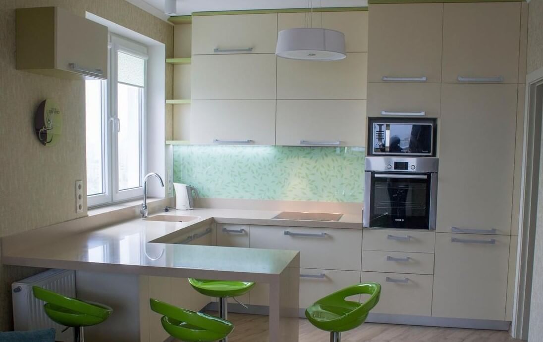 Комфортная и небольшая, поместилась на двух квадратных метрах, хотя изначально было предположение, что это невозможно сделать. Выглядит прилично и даже отлично, несколько на скромный бюджет. Сделана под индивидуальный размер и с учетом желаний жены - по фасадам, барной стойке и удобному расположению плиты. Довольны результатом и выражаем благодарность мебельной компании.