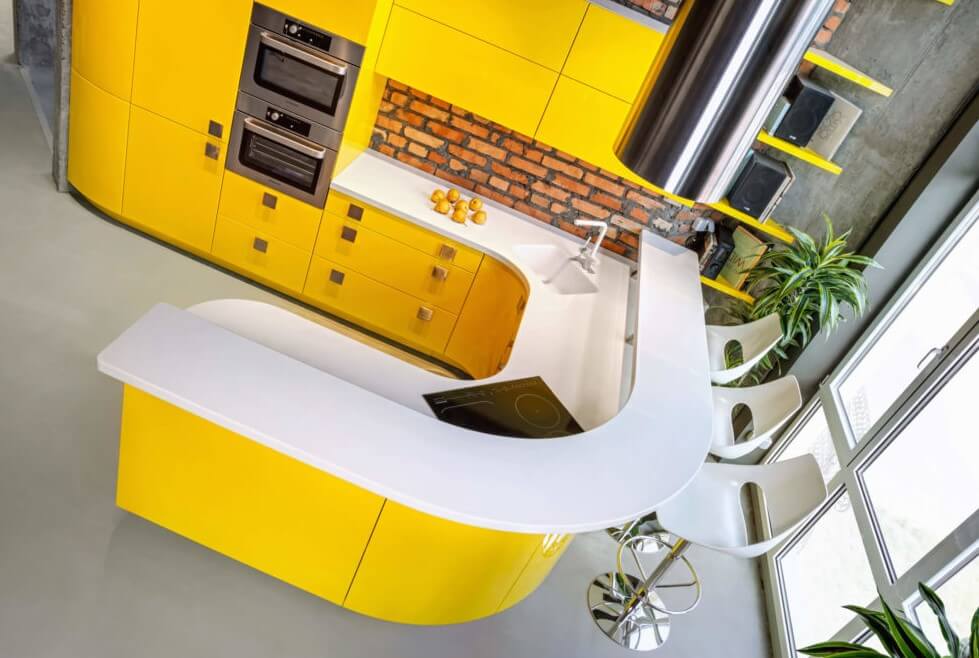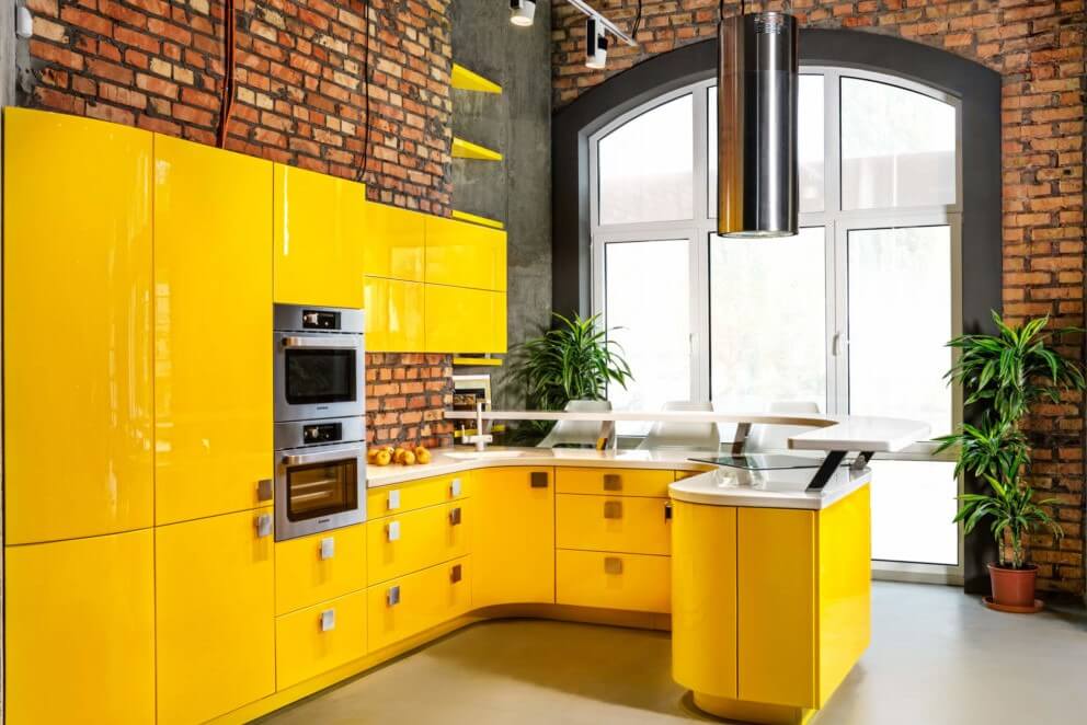 • Яркая кухня для интерьера в стиле лофт, впечатляющее решение