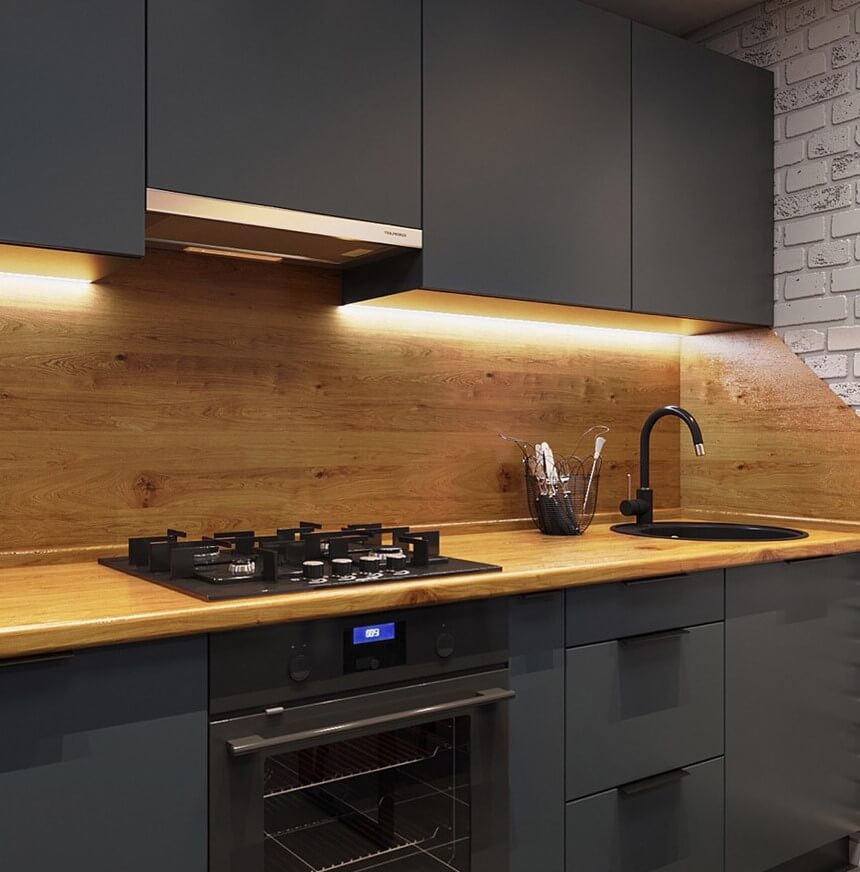 Я как поклонник стиля минимализм искал нечто вписывающееся в мое восприятие мира. Дизайн кухни оценил высоко. Темный в сочетании с деревом выглядит великолепно. Жене тоже нравится наша кухня, но пока она еще не ощутила весь шик минимализма. Заказывал также установку. Мастера справились без затягивания времени. Не отвлекали по пустякам. В целом работой компании остался доволен.