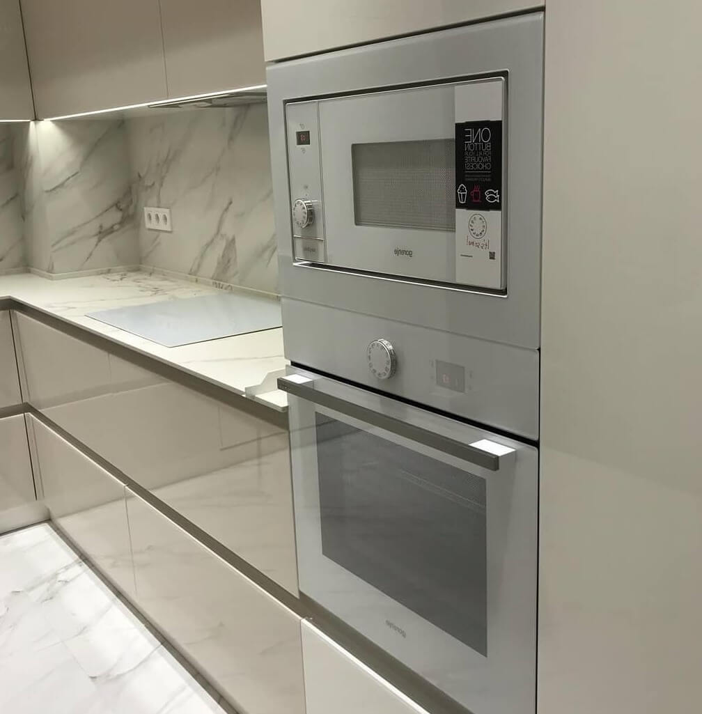 Признательна за качественное изготовление и установку. Пользуюсь с огромным удовольствием. Формы и качество кухни превзошли все мои ожидания. Вместе с кухней также заказали бытовую технику и получили скидку -20%. В целом цена была адекватной, а заказ был выполнен быстрее установленных сроков. Бригада при установке работала аккуратно, прибрали все после себя. Всегда пристально обращаю внимание на мелочи, в данном случае бытовая техника смотрится как “влитая”, зазоры или вообще отсутствуют или составляют лишь доли миллиметров. Вы исполнили мою мечту!